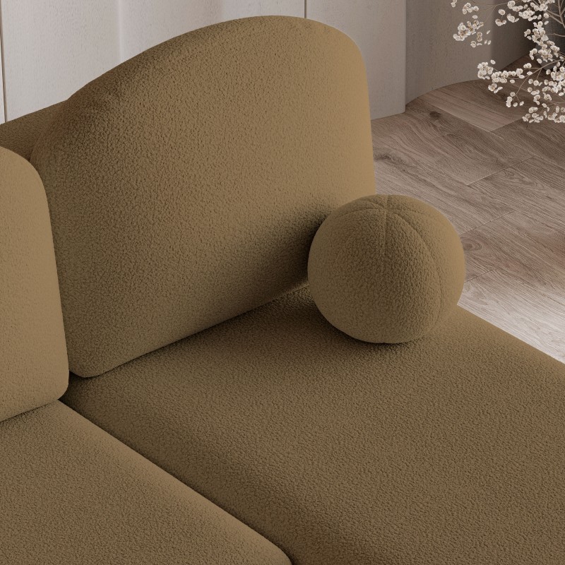 - Struktura tkaniny składa się z miękkich pętelek, które nadają meblowi charakteru i modnego wyglądu. Materiał jest wytrzymały, odporny na codzienne użytkowanie i łatwy w czyszczeniu.