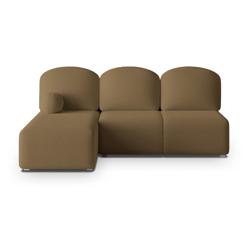 - Brak bocznych elementów sprawia, że narożnik wygląda lżej i nie przytłacza przestrzeni. Ułatwia to również swobodne korzystanie z mebla z każdej strony, zwiększając jego funkcjonalność. Dodatkowo jest meblem wolnostojącym – z każdej strony obity tą samą tkaniną, dzięki czemu może oddzielać pomieszczenia lub być swego rodzaju wyspą.