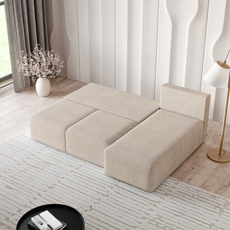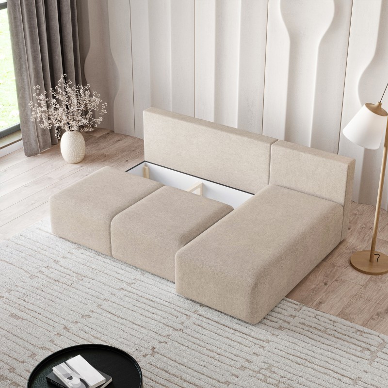 Masseno Narożnik TRAMA z funkcją spania i pojemnikiem na pościel Narozniki L, Rozkładana sofa - Beżowy, NEVE 04
