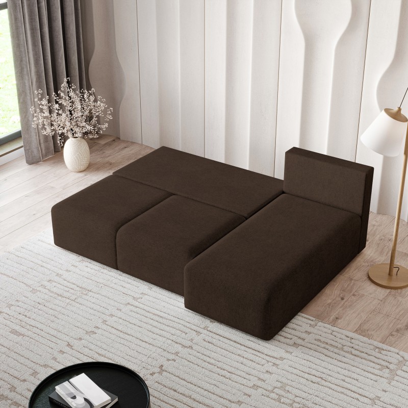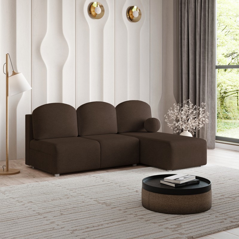 Masseno Narożnik TRAMA z funkcją spania i pojemnikiem na pościel Narozniki L, Rozkładana sofa - Brązowy, NEVE 28