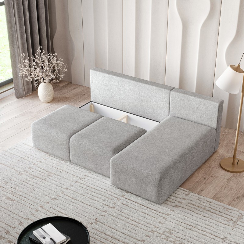 Masseno Narożnik TRAMA z funkcją spania i pojemnikiem na pościel Narozniki L, Rozkładana sofa - Jasnoszary, NEVE 83
