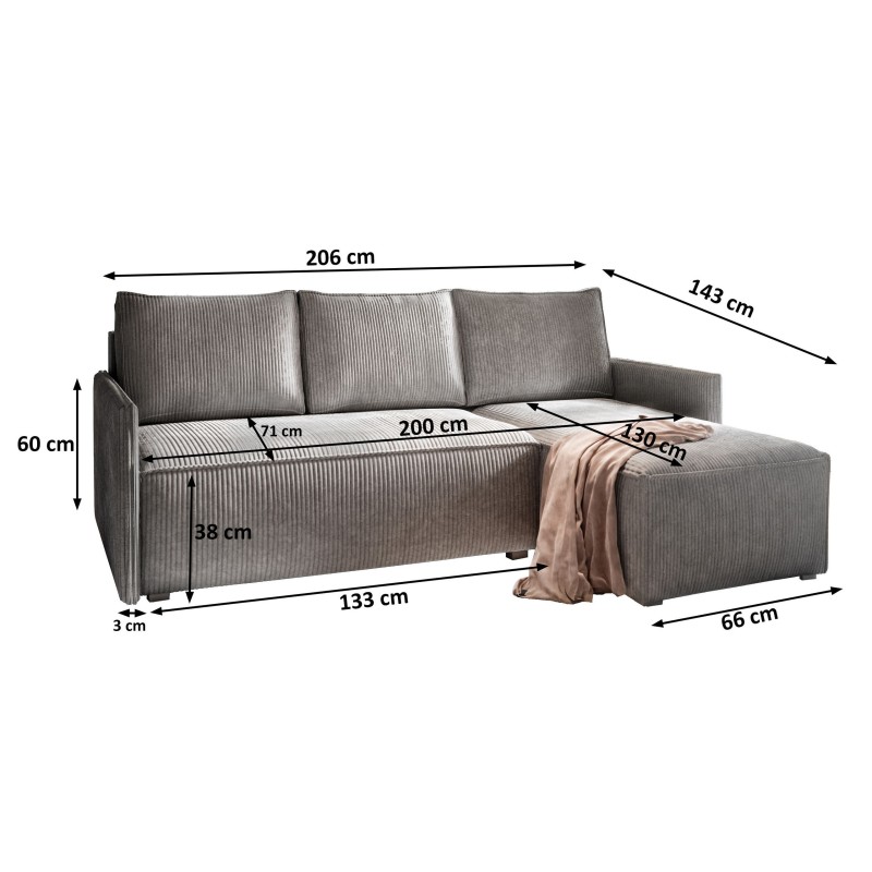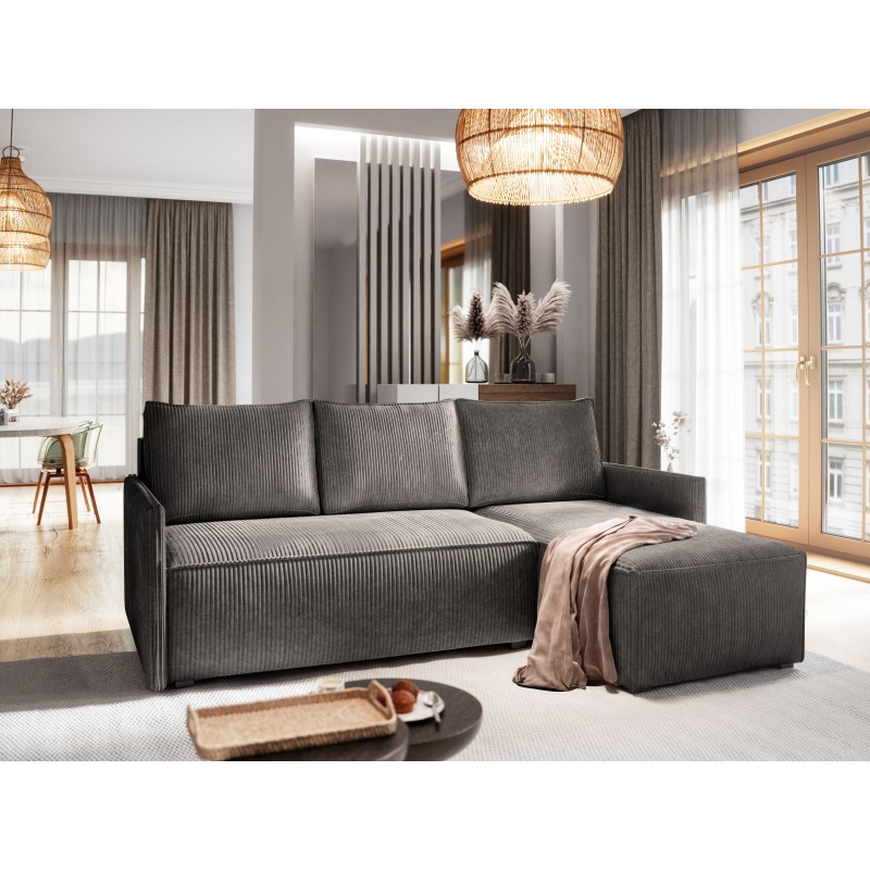 Masseno Narożnik PERUSI z funkcją spania i pojemnikiem na pościel Narozniki L, Rozkładana sofa - Grafitowy, POSO 34
