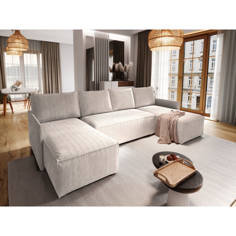 Masseno Narożnik TRES z funkcją spania i pojemnikiem na pościel Narozniki U, Rozkładana sofa - Kremowy, POSO 100