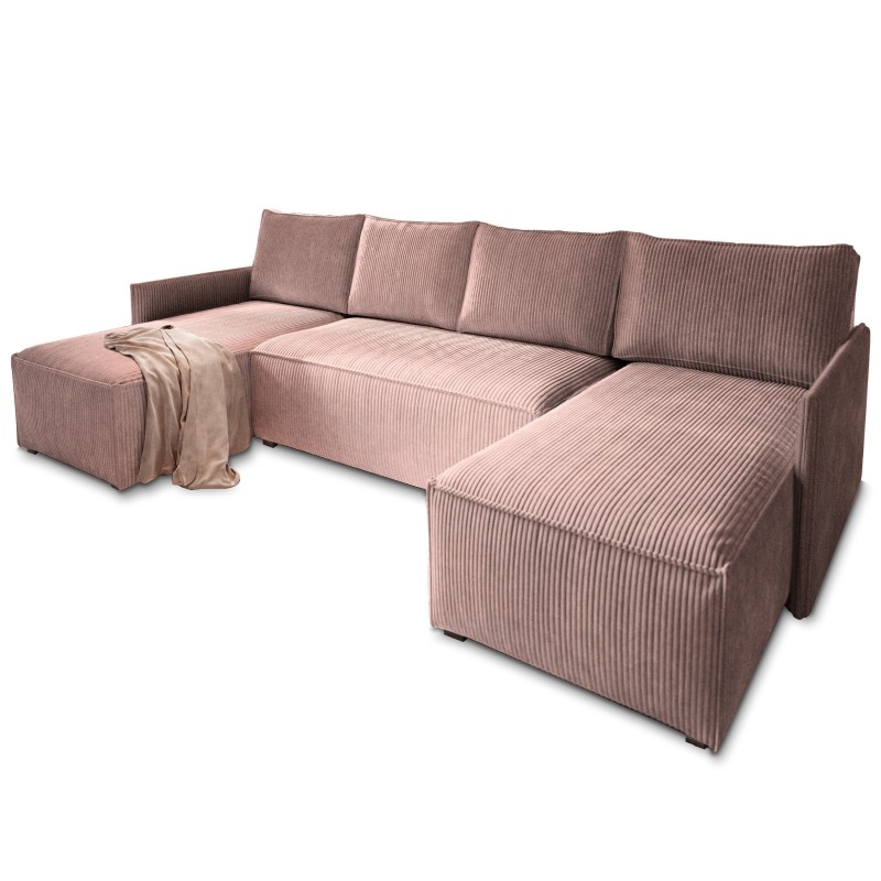 Masseno Narożnik TRES z funkcją spania i pojemnikiem na pościel Narozniki U, Rozkładana sofa - Wrzosowy, POSO 130