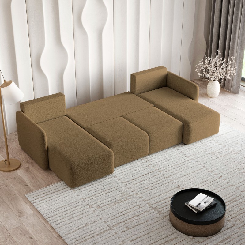 Masseno Narożnik NUBERO z funkcją spania i pojemnikiem na pościel Narozniki U, Rozkładana sofa - Miodowy, QUELLE 17