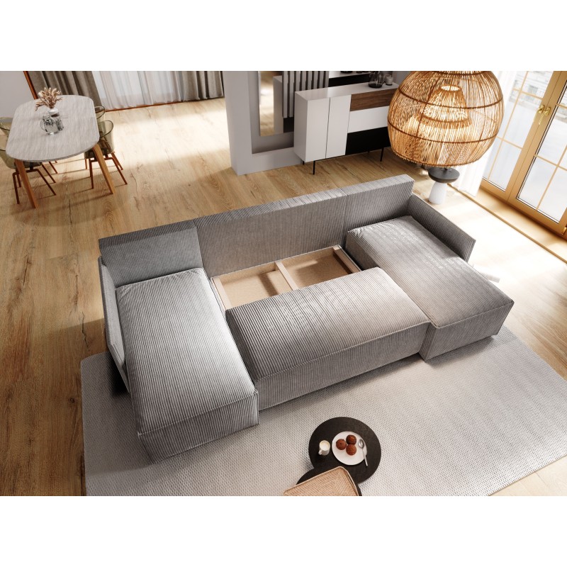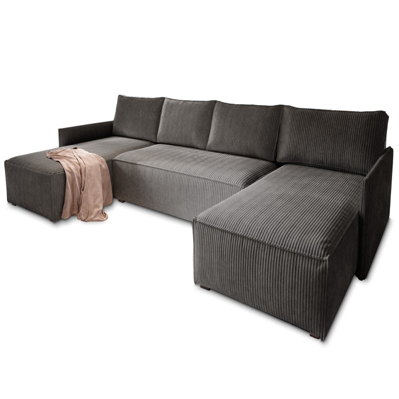 Masseno Narożnik TRES z funkcją spania i pojemnikiem na pościel Narozniki U, Rozkładana sofa - Grafitowy, POSO 34