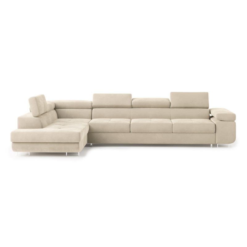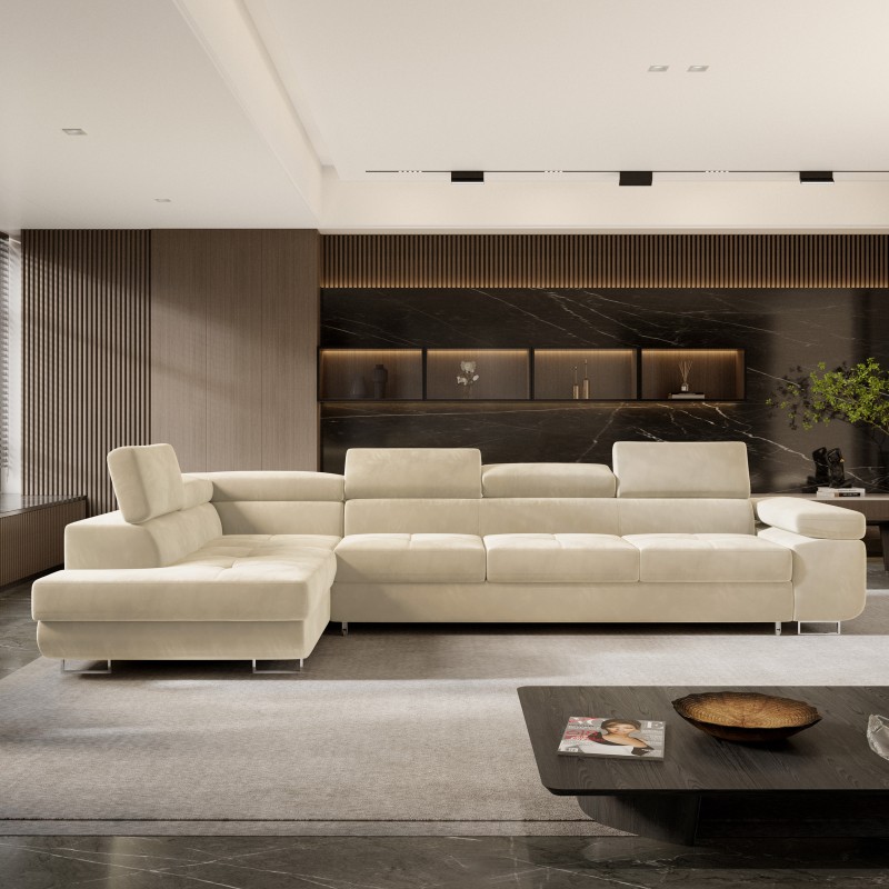 Masseno Narożnik VICENTE z funkcją spania i pojemnikiem na pościel Narozniki L, Rozkładana sofa - Kremowy, MONOLITH 04