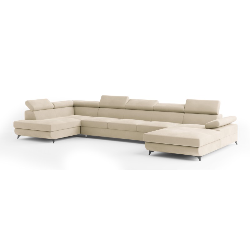 Masseno Narożnik MONTIVA z funkcją spania i pojemnikiem na pościel Narozniki U, Rozkładana sofa - Kremowy, MONOLITH 04