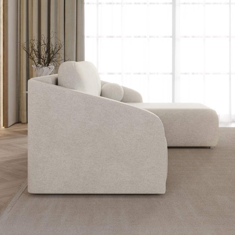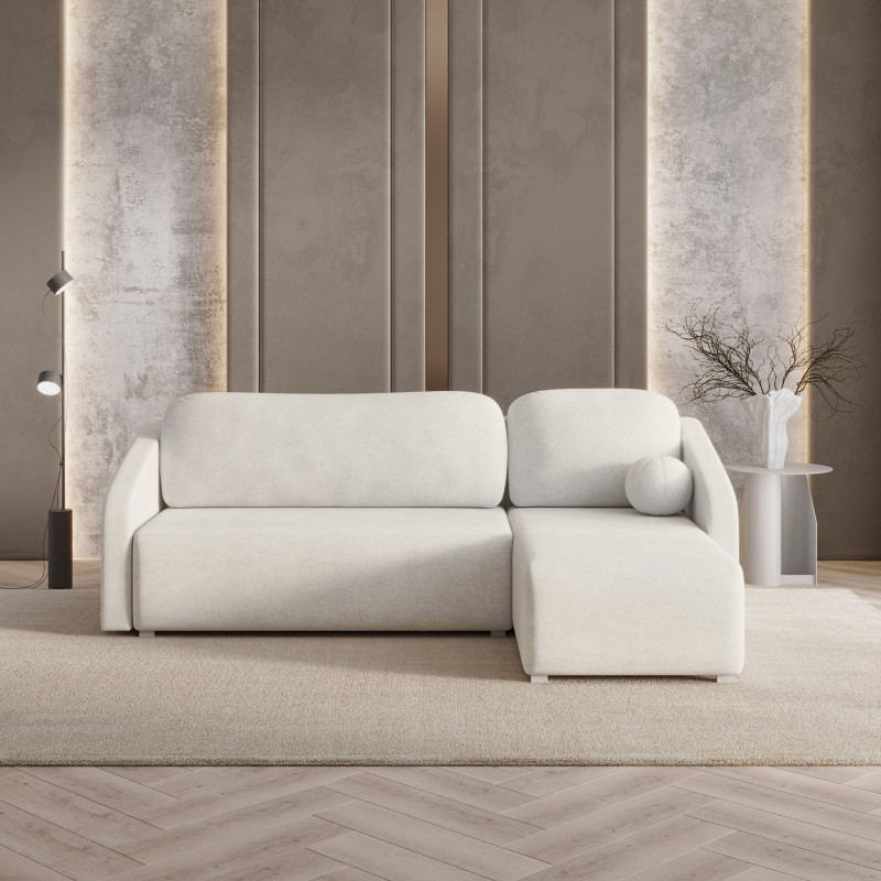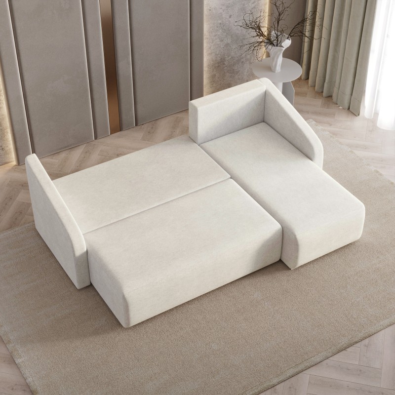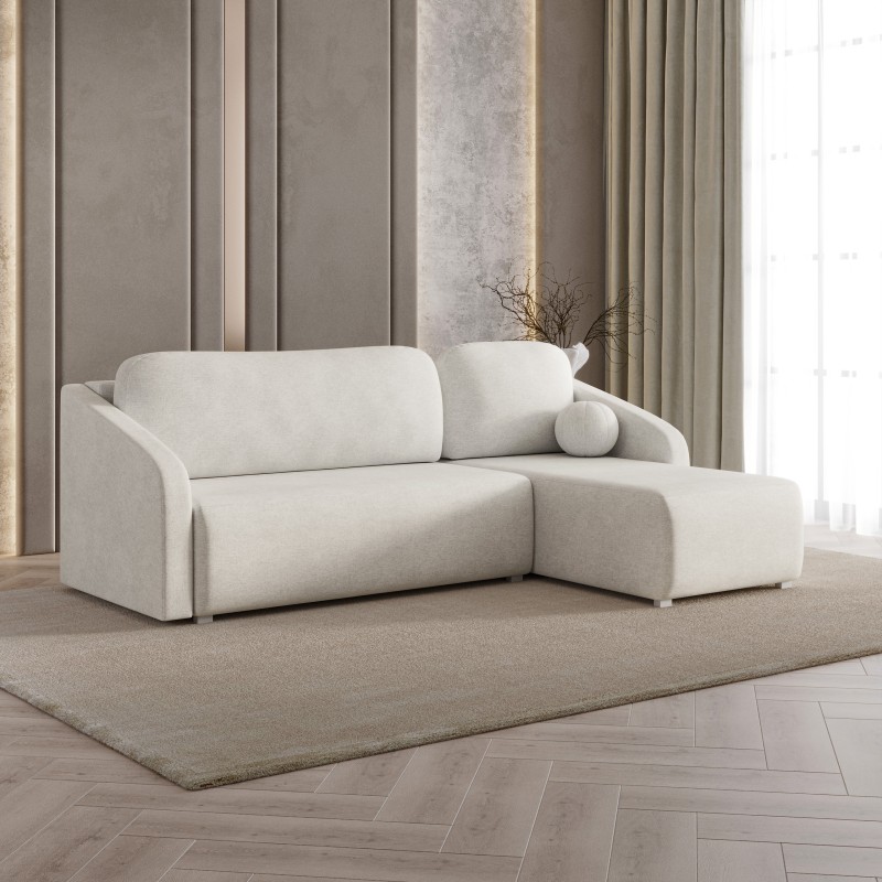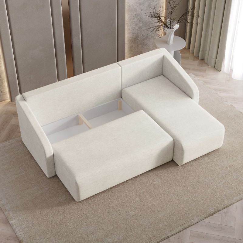 Masseno Narożnik MARELLO z funkcją spania i pojemnikiem na pościel Narozniki L, Rozkładana sofa - Kremowy, NEVE 02
