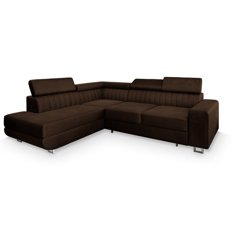 Masseno Narożnik NOLA z funkcją spania i pojemnikiem na pościel Narozniki L, Rozkładana sofa - Brązowy, MONOLITH 29