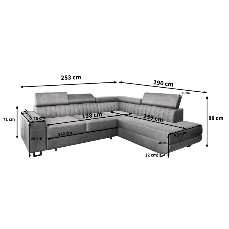 Jednym z kluczowych elementów tej rogówki jest otwierany pojemnik, który oferuje mnóstwo miejsca na przechowywanie pościeli, sezonowych ubrań czy butów. To praktyczne rozwiązanie sprawia, że Twój salon pozostanie zawsze schludny i uporządkowany, a wszystkie potrzebne przedmioty będą zawsze pod ręką. Usiądź wygodnie, dostosuj ustawienie zagłówka, skorzystaj z wygodnego podłokietnika i oddaj się pełnemu relaksowi, nie ważne czy będzie to podczas długich seansów filmowych czy leniwych wieczorów z książką. Dostosuj mebel do swoich potrzeb i ciesz się maksymalnym komfortem, który dopasuje się do Ciebie.