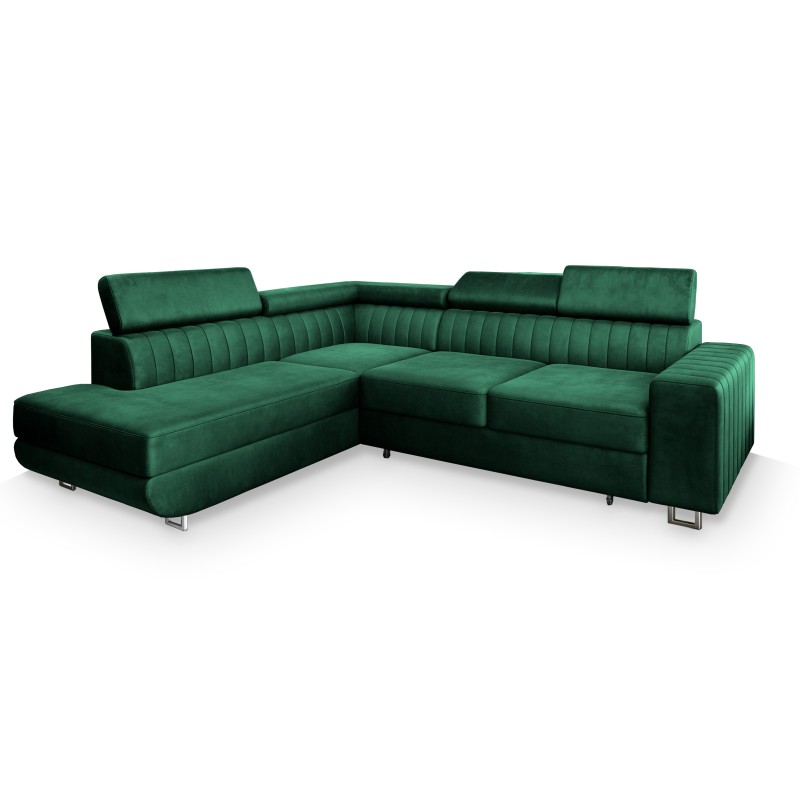 Masseno Narożnik NOLA z funkcją spania i pojemnikiem na pościel Narozniki L, Rozkładana sofa - Butelkowa zieleń, MONOLITH 37
