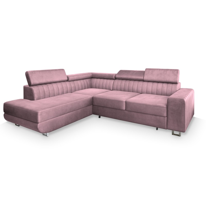 Masseno Narożnik NOLA z funkcją spania i pojemnikiem na pościel Narozniki L, Rozkładana sofa - Wrzosowy, MONOLITH 62