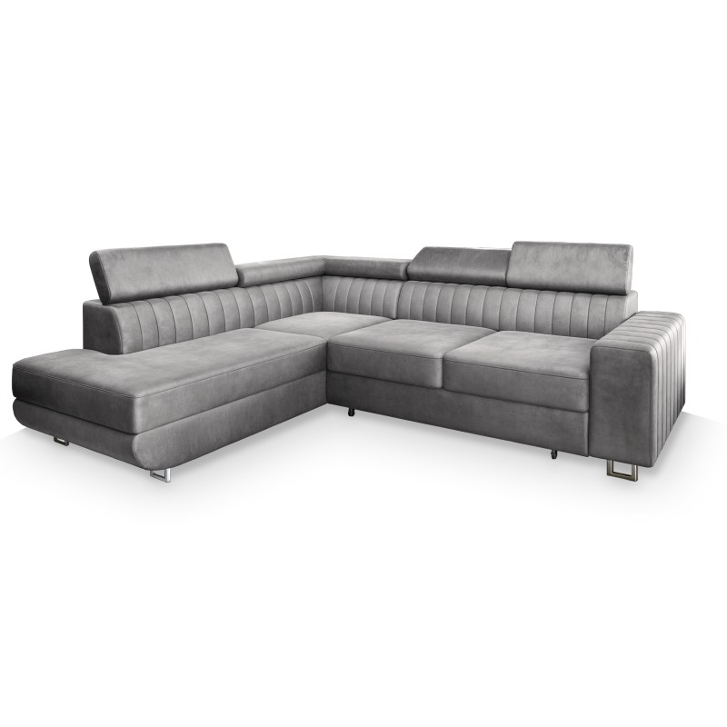 Masseno Narożnik NOLA z funkcją spania i pojemnikiem na pościel Narozniki L, Rozkładana sofa - Jasnoszary, MONOLITH 84