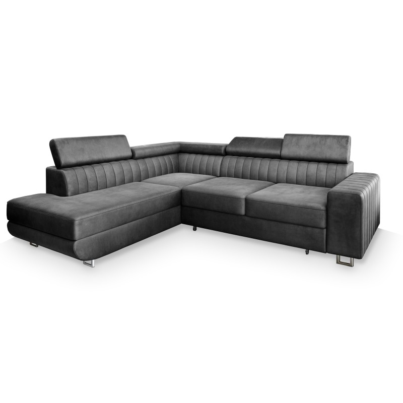 Masseno Narożnik NOLA z funkcją spania i pojemnikiem na pościel Narozniki L, Rozkładana sofa - Szary, MONOLITH 85