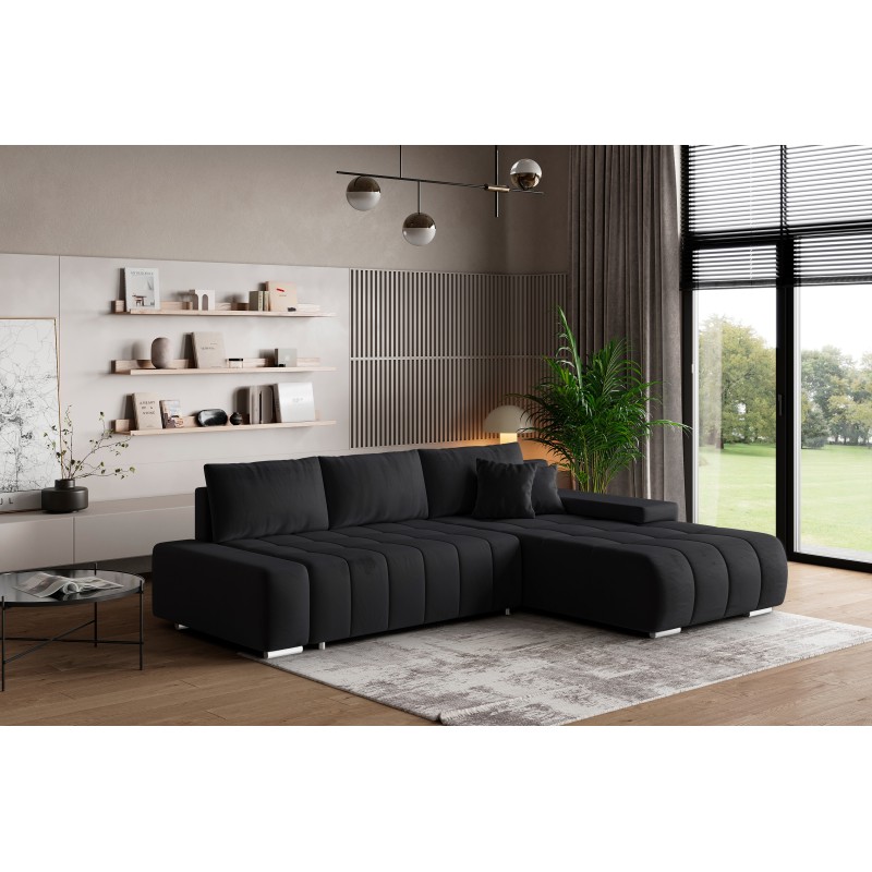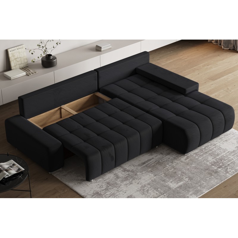 Masseno Narożnik ALESE z funkcją spania i pojemnikiem na pościel Narozniki L, Rozkładana sofa - Czarny, MONOLITH 95