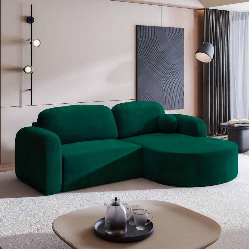 Masseno Narożnik AMILIA z funkcją spania i pojemnikiem na pościel Narozniki L, Rozkładana sofa - Butelkowa zieleń, MONOLITH 37