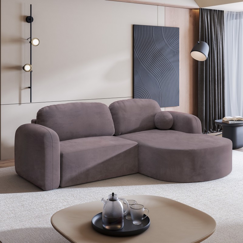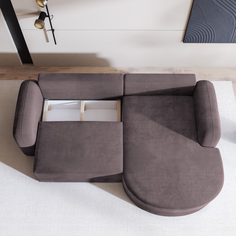 Masseno Narożnik AMILIA z funkcją spania i pojemnikiem na pościel Narozniki L, Rozkładana sofa - Wrzosowy, MONOLITH 62