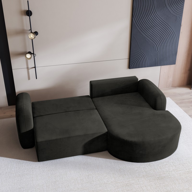 Masseno Narożnik AMILIA z funkcją spania i pojemnikiem na pościel Narozniki L, Rozkładana sofa - Czarny, MONOLITH 95