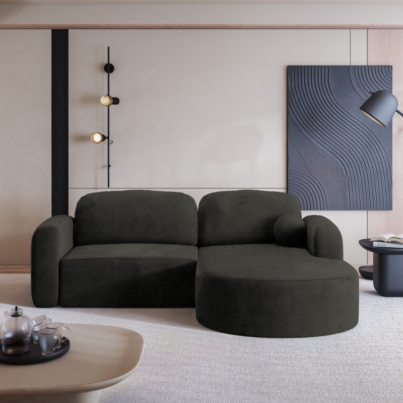 AMILIA to narożnik, który zachwyca wyjątkową formą i komfortem użytkowania. Jego najbardziej charakterystycznym elementem jest zaokrąglona otomana, która nadaje całości nowoczesnego wyglądu i wizualnej lekkości. Subtelna asymetria i harmonijne proporcje sprawiają, że narożnik prezentuje się niezwykle stylowo, doskonale wpisując się w nowoczesne, wnętrza.