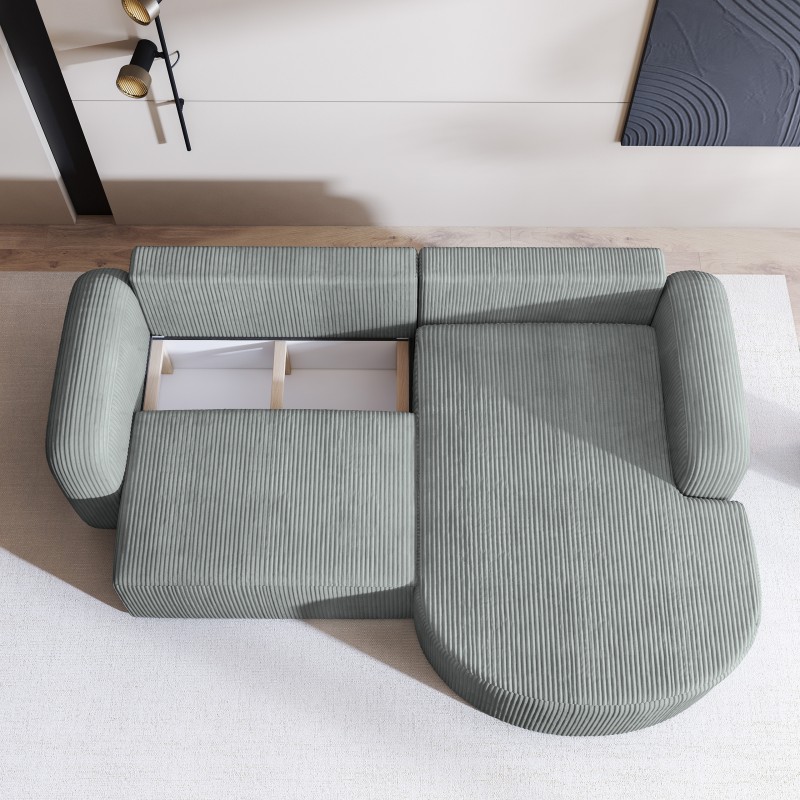 Masseno Narożnik AMILIA z funkcją spania i pojemnikiem na pościel Narozniki L, Rozkładana sofa - Jasnoszary, POSO 55