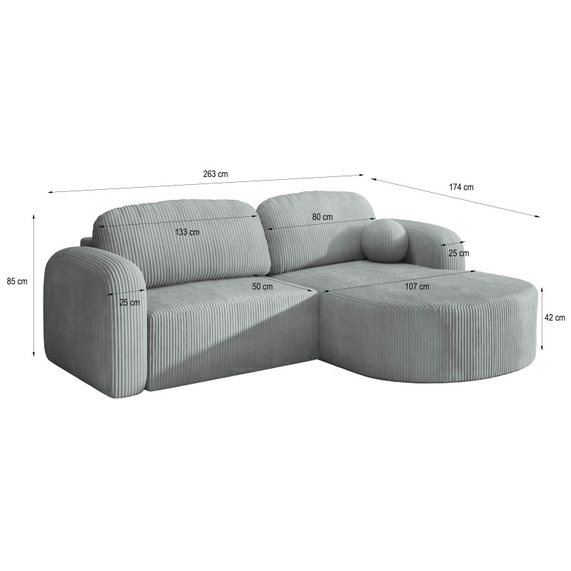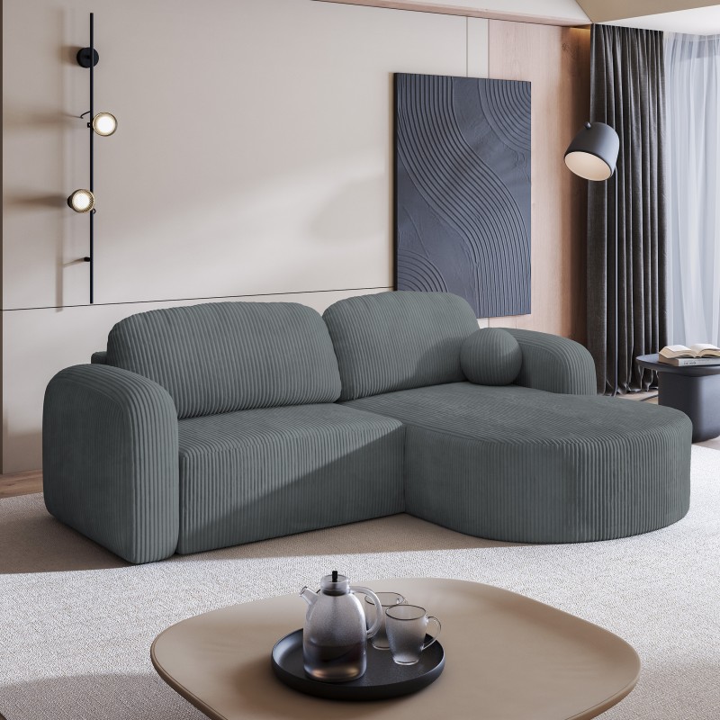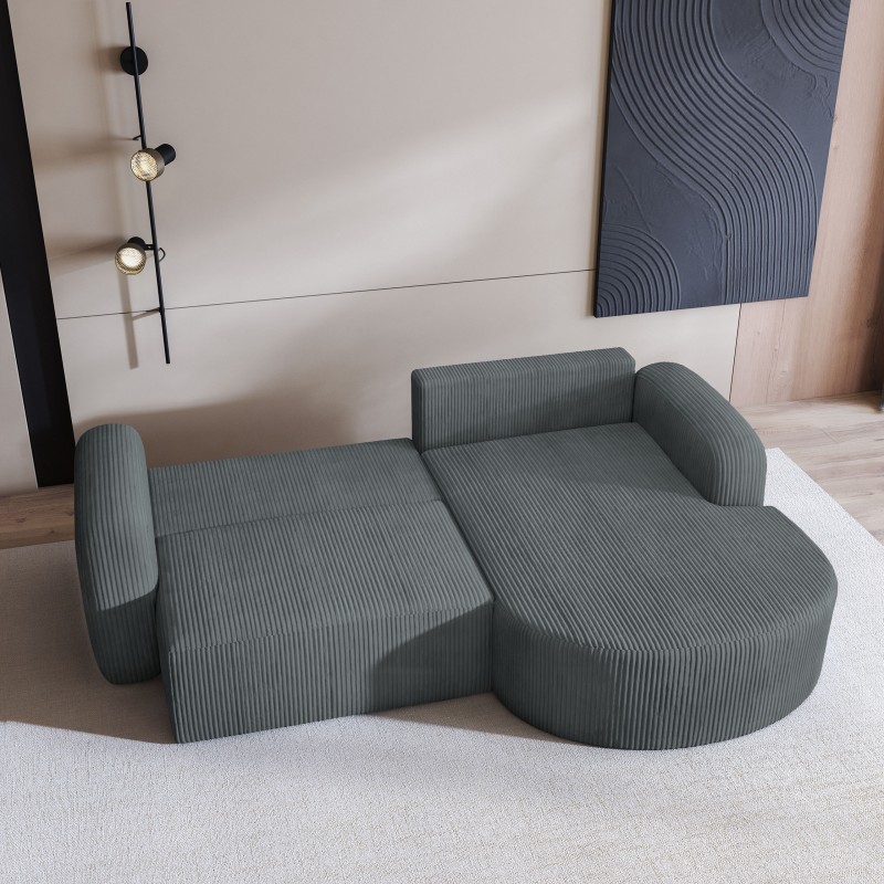 Masseno Narożnik AMILIA z funkcją spania i pojemnikiem na pościel Narozniki L, Rozkładana sofa - Szary, POSO 60