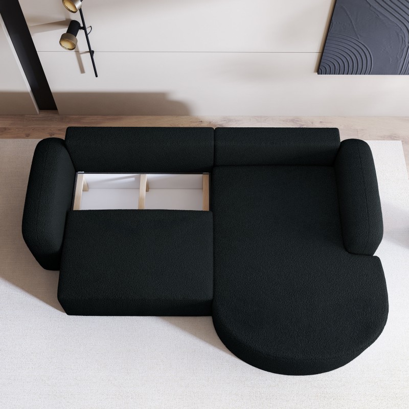 Masseno Narożnik AMILIA z funkcją spania i pojemnikiem na pościel Narozniki L, Rozkładana sofa - Czarny, QUELLE 100