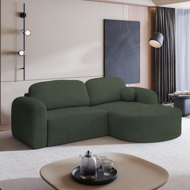 Masseno Narożnik AMILIA z funkcją spania i pojemnikiem na pościel Narozniki L, Rozkładana sofa - Zielony, QUELLE 37