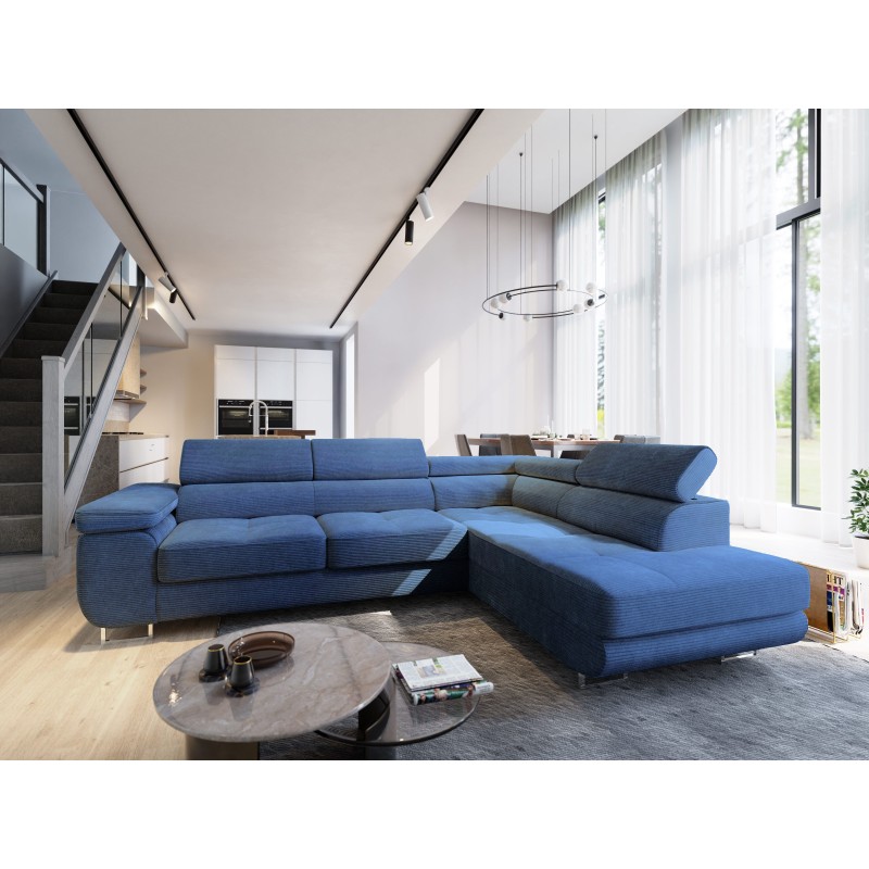 Masseno Narożnik APIRO z funkcją spania i pojemnikiem na pościel Narozniki L, Rozkładana sofa - Niebieski, POSO 05