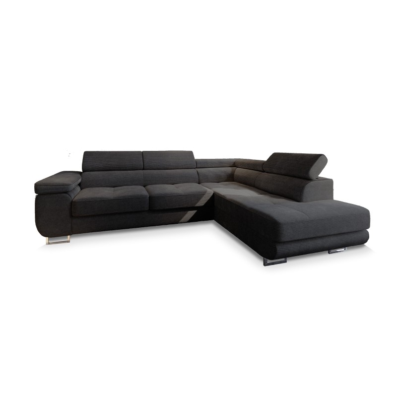 Masseno Narożnik APIRO z funkcją spania i pojemnikiem na pościel Narozniki L, Rozkładana sofa - Czarny, POSO 135