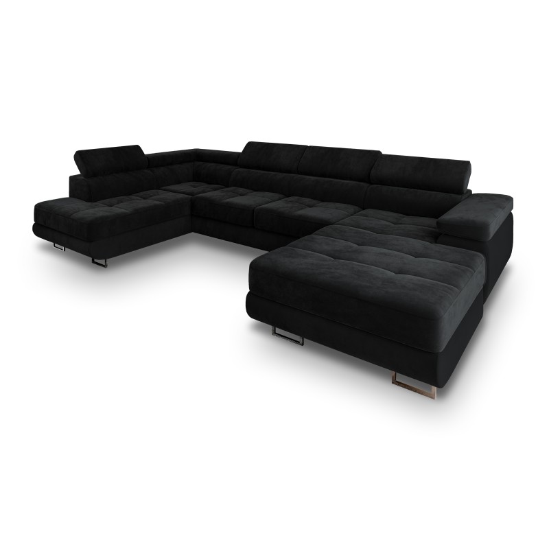 Masseno Narożnik CASONE z funkcją spania i pojemnikiem na pościel Narozniki U, Rozkładana sofa - Czarny, MONOLITH 95