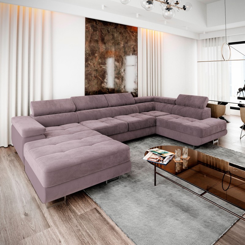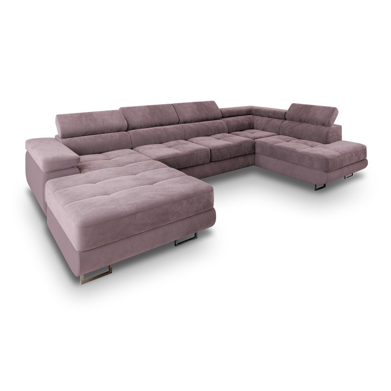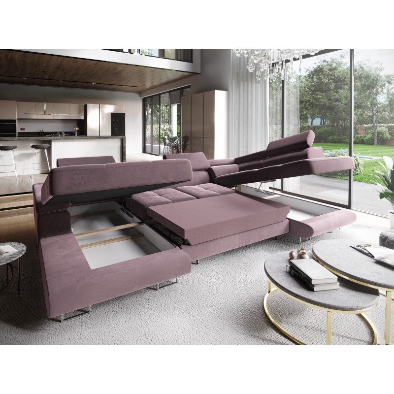 Masseno Narożnik CASONE z funkcją spania i pojemnikiem na pościel Narozniki U, Rozkładana sofa - Wrzosowy, MONOLITH 62