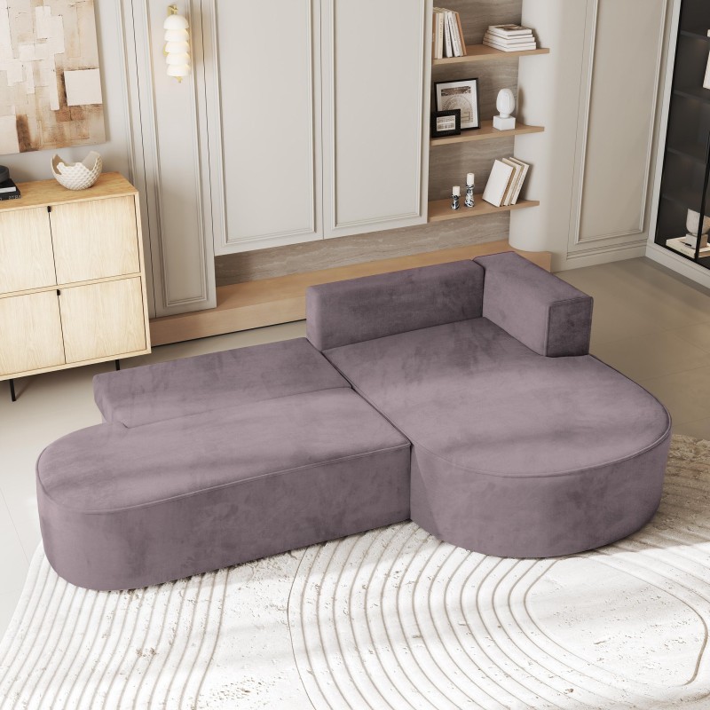Masseno Narożnik CORTIO z funkcją spania i pojemnikiem na pościel Narozniki L, Rozkładana sofa - Wrzosowy, MONOLITH 62