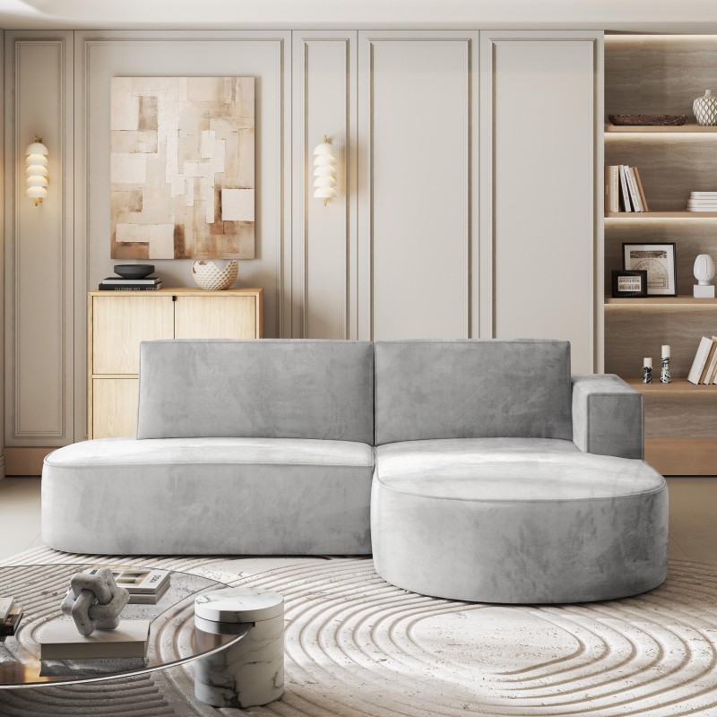 Masseno Narożnik CORTIO z funkcją spania i pojemnikiem na pościel Narozniki L, Rozkładana sofa - Jasnoszary, MONOLITH 84