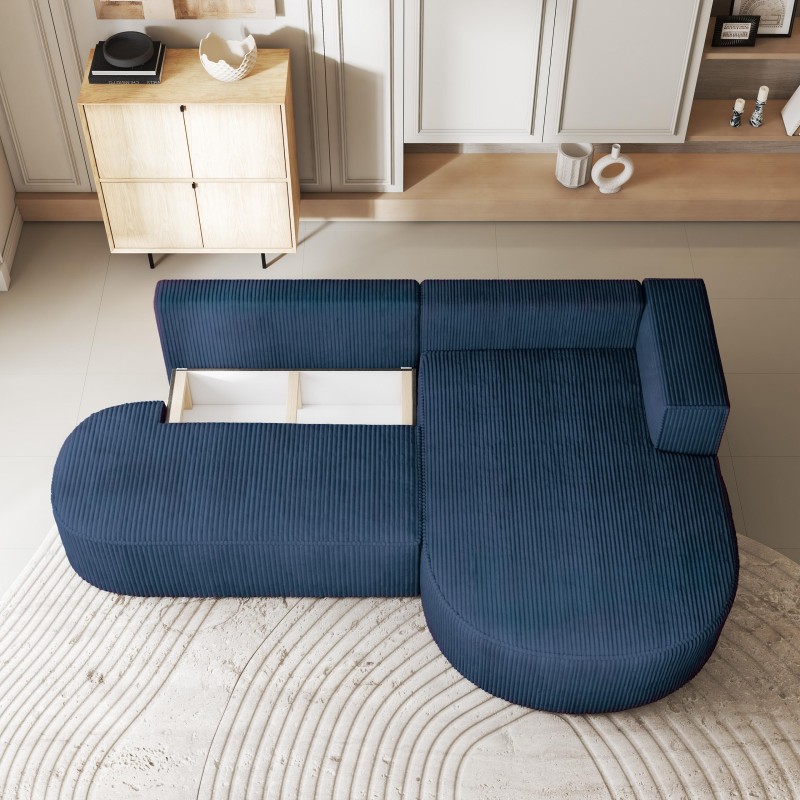 Masseno Narożnik CORTIO z funkcją spania i pojemnikiem na pościel Narozniki L, Rozkładana sofa - Niebieski, POSO 05