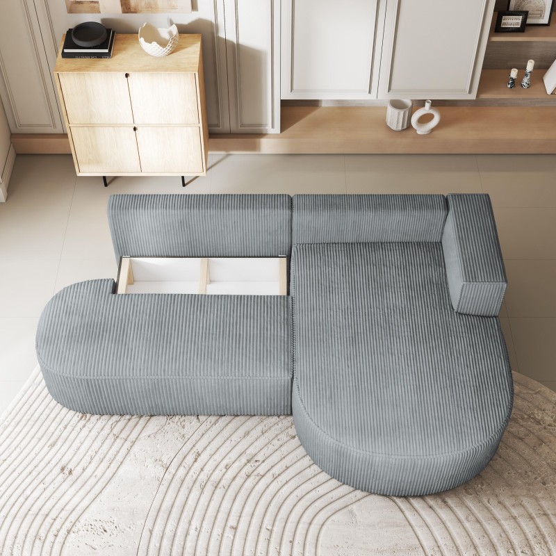 Masseno Narożnik CORTIO z funkcją spania i pojemnikiem na pościel Narozniki L, Rozkładana sofa - Jasnoszary, POSO 55