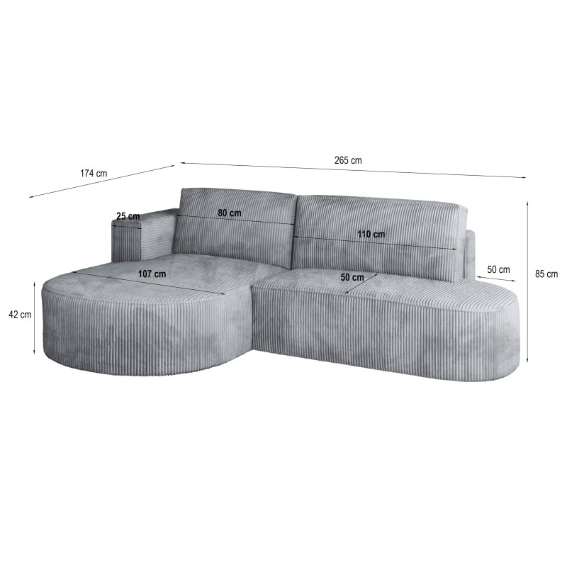 Masseno Narożnik CORTIO z funkcją spania i pojemnikiem na pościel Narozniki L, Rozkładana sofa - Szary, POSO 60