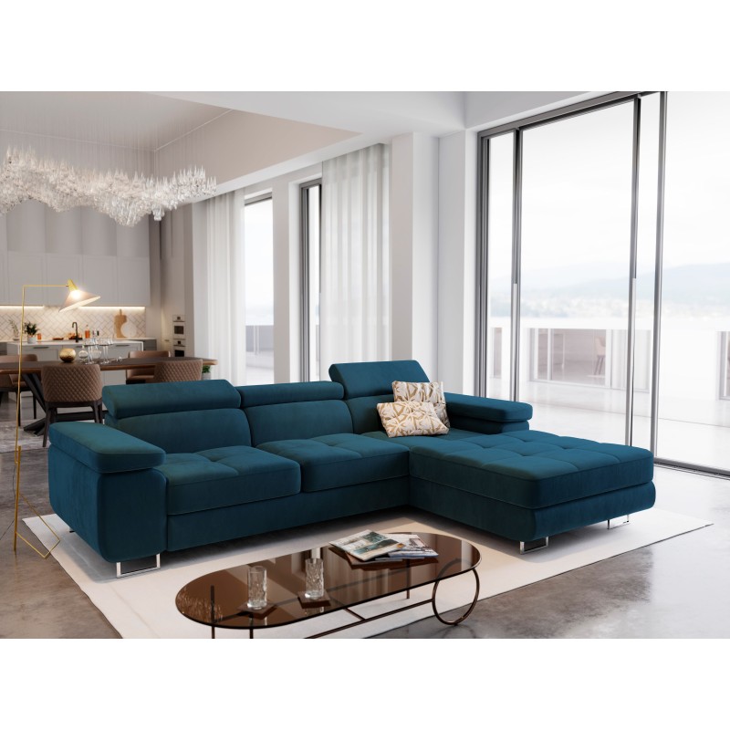 Masseno Narożnik ELMA z funkcją spania i pojemnikiem na pościel Narozniki L, Rozkładana sofa - Niebieski, MONOLITH 77