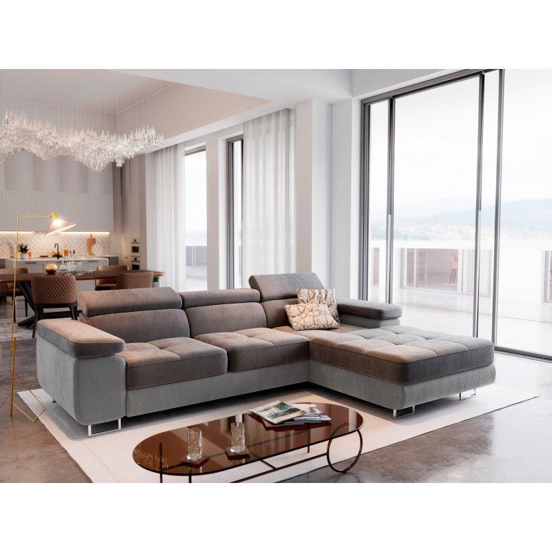 Masseno Narożnik ELMA z funkcją spania i pojemnikiem na pościel Narozniki L, Rozkładana sofa - Szary, MONOLITH 85 + MONOLITH 84