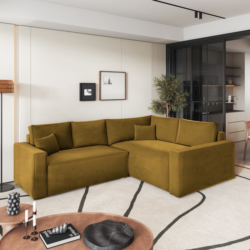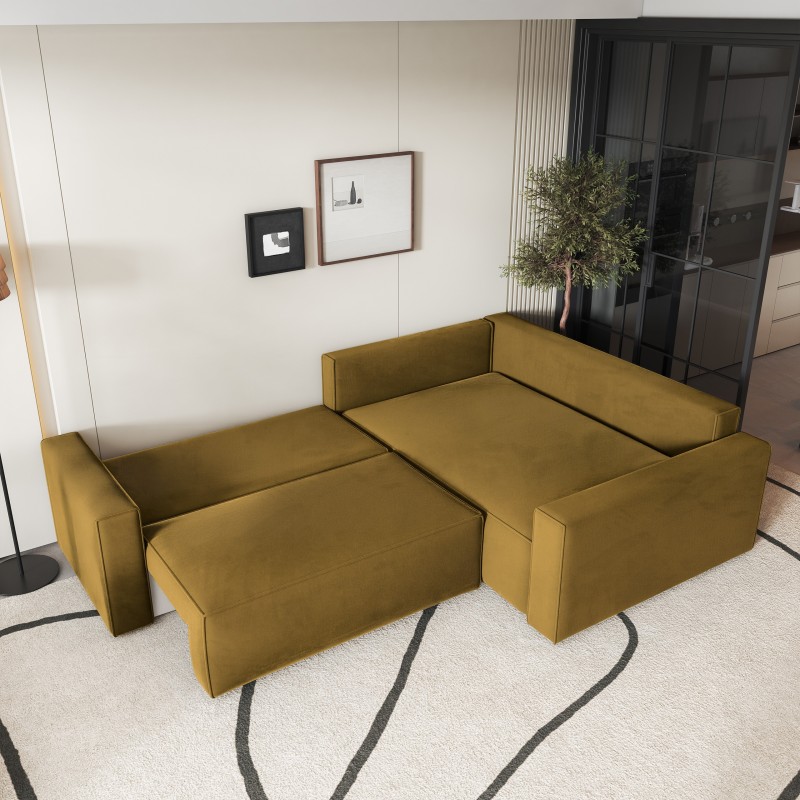 Masseno Narożnik ERONIS z funkcją spania i pojemnikiem na pościel Narozniki L, Rozkładana sofa - Żółty, MONOLITH 48