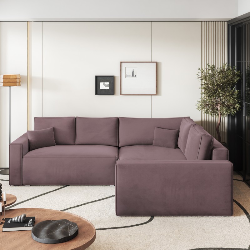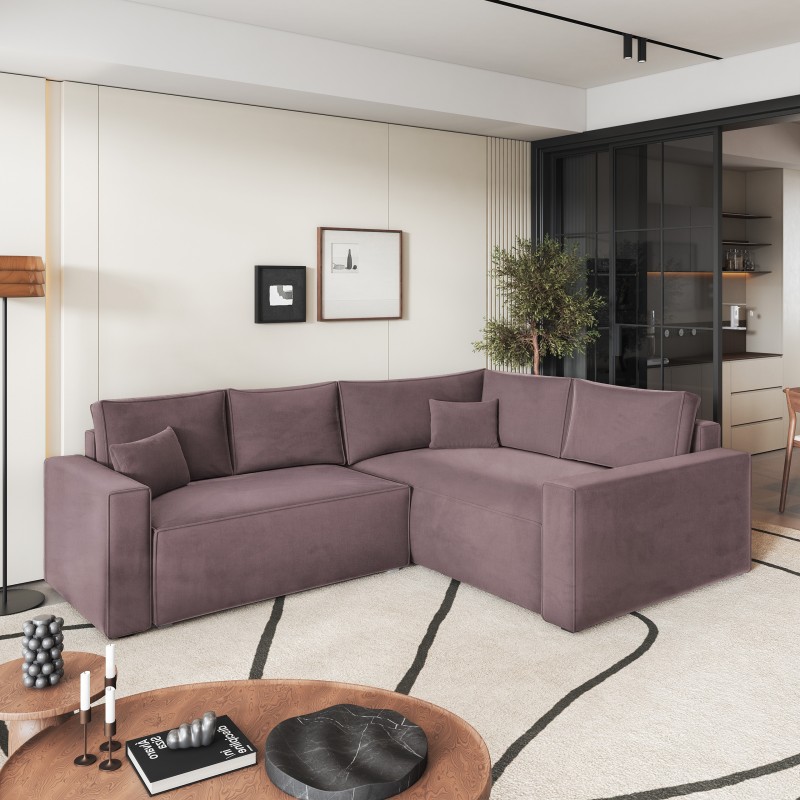 Masseno Narożnik ERONIS z funkcją spania i pojemnikiem na pościel Narozniki L, Rozkładana sofa - Wrzosowy, MONOLITH 62