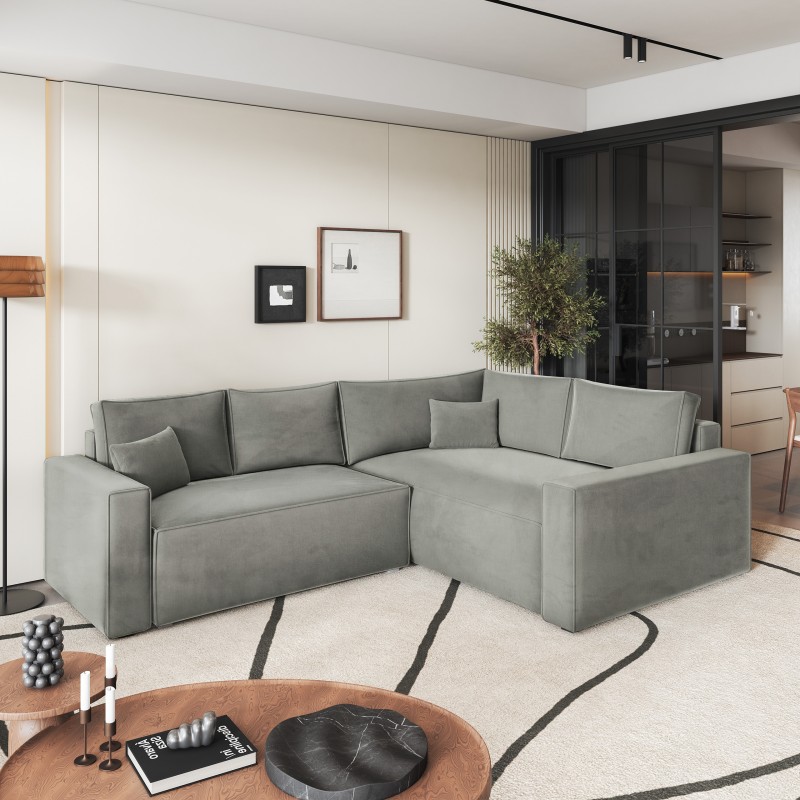 Masseno Narożnik ERONIS z funkcją spania i pojemnikiem na pościel Narozniki L, Rozkładana sofa - Jasnoszary, MONOLITH 84