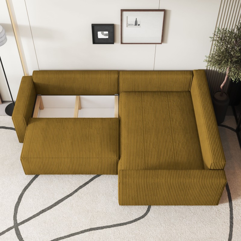 Masseno Narożnik ERONIS z funkcją spania i pojemnikiem na pościel Narozniki L, Rozkładana sofa - Żółty, POSO 01