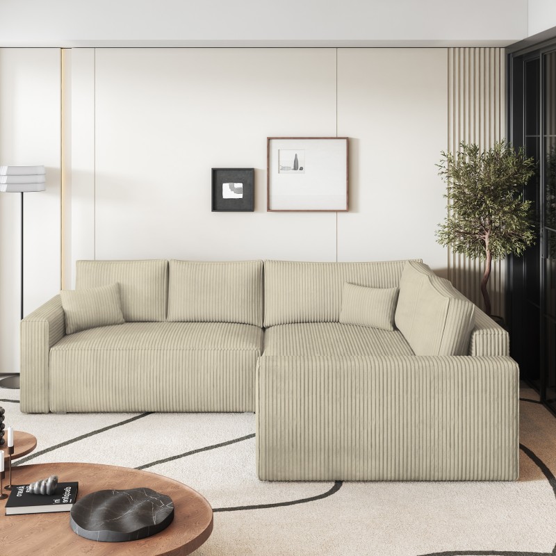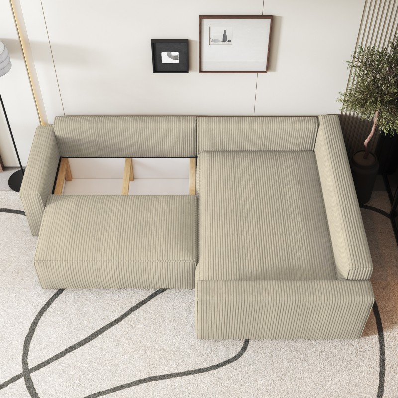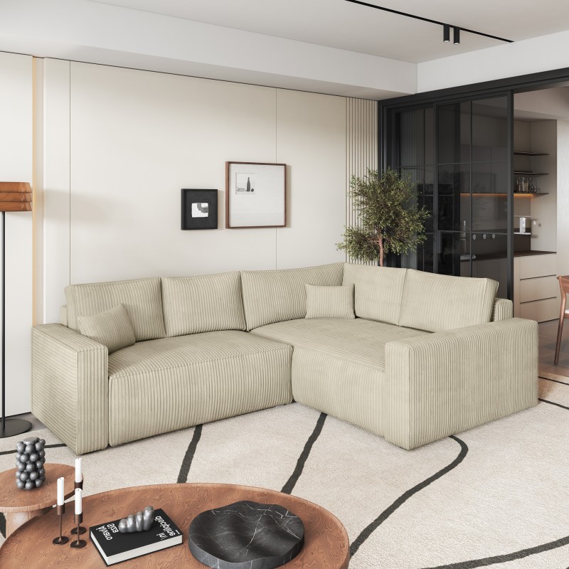 Masseno Narożnik ERONIS z funkcją spania i pojemnikiem na pościel Narozniki L, Rozkładana sofa - Kremowy, POSO 100