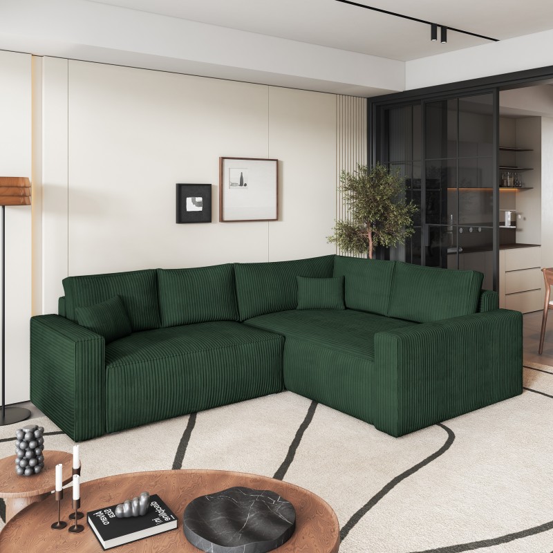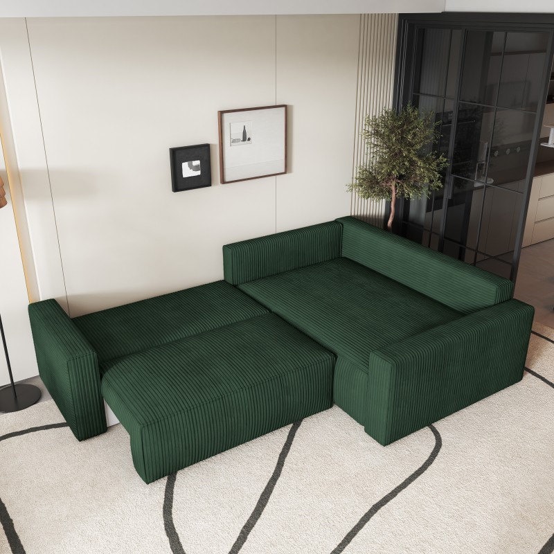 Masseno Narożnik ERONIS z funkcją spania i pojemnikiem na pościel Narozniki L, Rozkładana sofa - Zielony, POSO 14