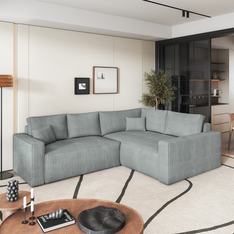 Masseno Narożnik ERONIS z funkcją spania i pojemnikiem na pościel Narozniki L, Rozkładana sofa - Jasnoszary, POSO 55