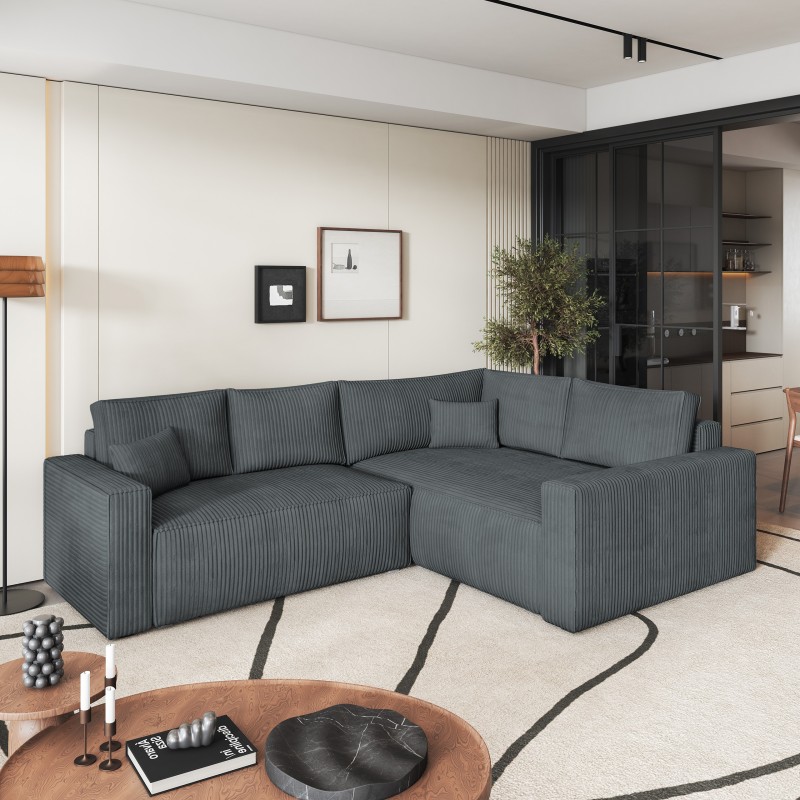 Masseno Narożnik ERONIS z funkcją spania i pojemnikiem na pościel Narozniki L, Rozkładana sofa - Szary, POSO 60