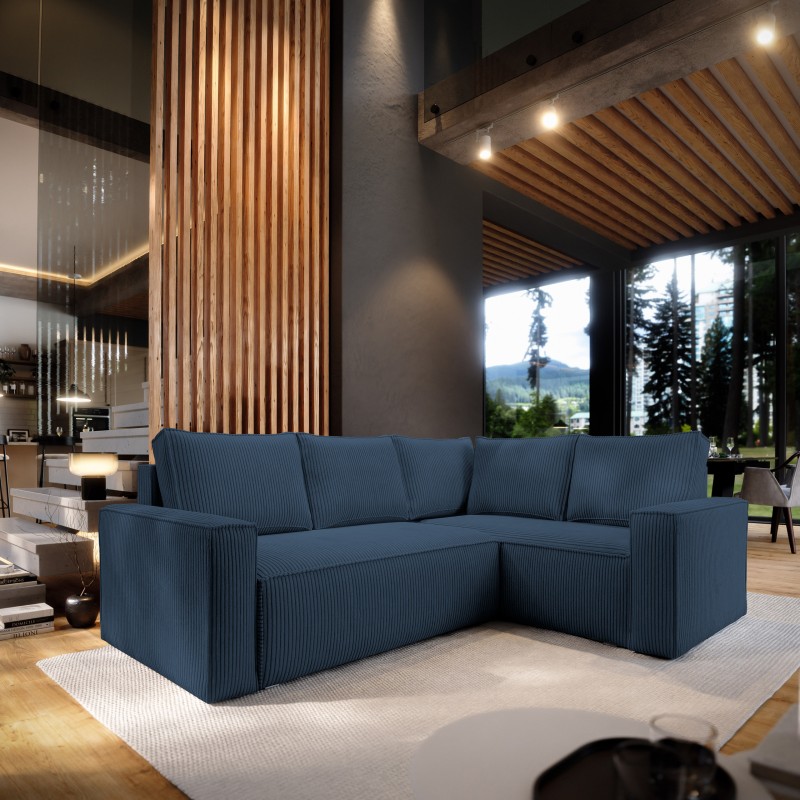 Masseno Narożnik ESTANO z funkcją spania i pojemnikiem na pościel Narozniki L, Rozkładana sofa - Niebieski, POSO 05