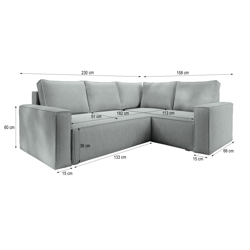 Funkcja spania umożliwia szybkie przekształcenie narożnika w wygodne łóżko dla gości, a wbudowany pojemnik na pościel zapewnia dodatkowe miejsce do przechowywania.