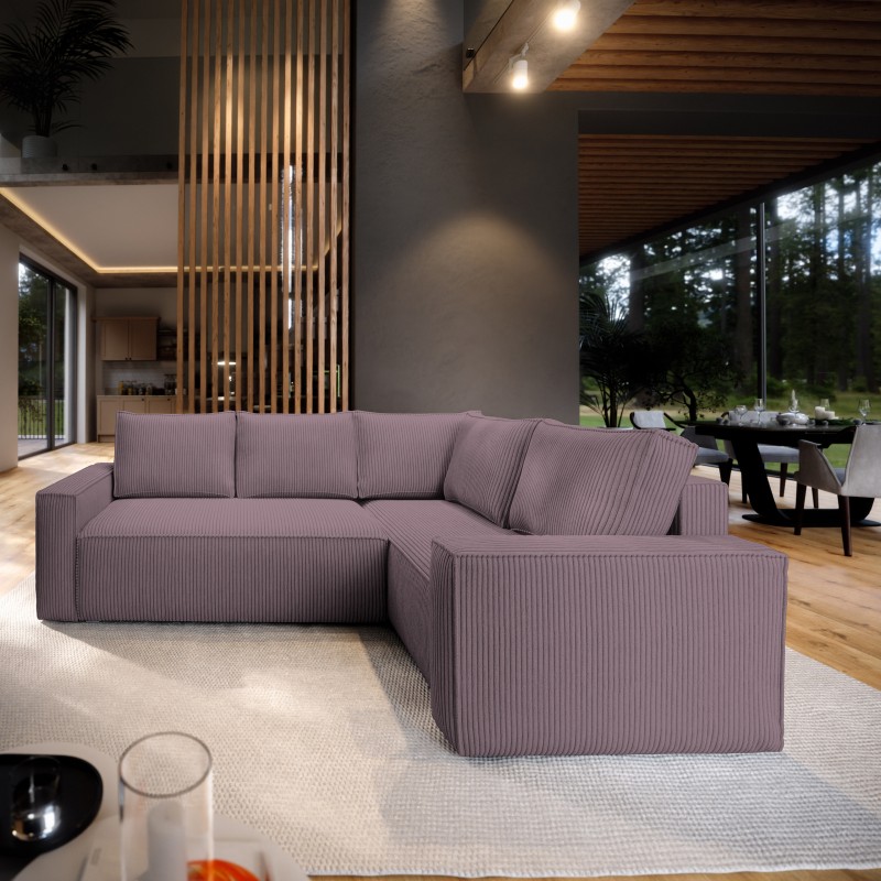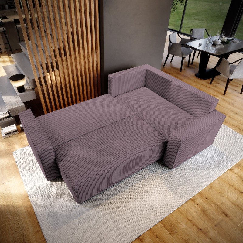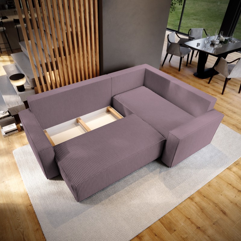 Masseno Narożnik ESTANO z funkcją spania i pojemnikiem na pościel Narozniki L, Rozkładana sofa - Wrzos, POSO 130